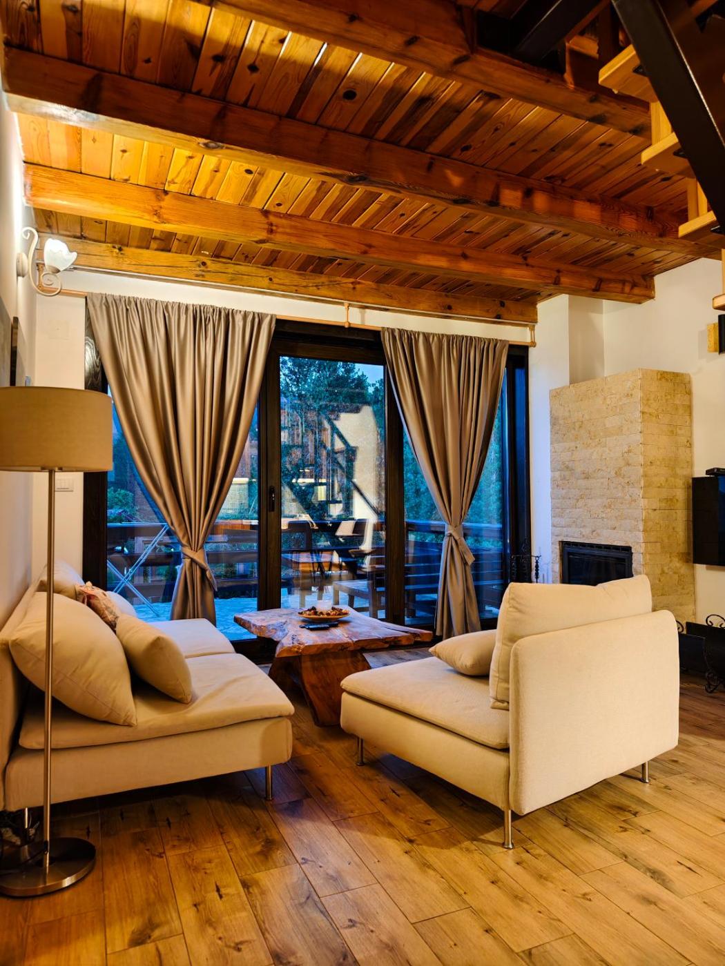 Two-Bedroom Chalet. This chalets standout feature is the fireplace. Boasting a private entrance, this chalet includes 1 living room, 2 separate bedrooms and 1 bathroom with a walk-in shower and a hairdryer. Guests will find a stovetop, a refrigerator, kitchenware and an oven in the well-fitted kitchen. The chalet also features a barbecue. Featuring a terrace with garden views, this chalet also offers soundproof walls and a flat-screen TV with cable channels. The unit has 4 beds.