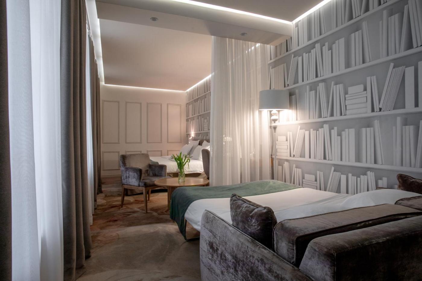 Junior Family Room. These comfortable and spacious suites feature a romantic and cosy design, and are positioned in a quiet part of the hotel.rooms comprise a sofa bed with a memory foam mattress, Smart TV with integrated WiFi connectivity and ability to connect to your laptop, tablet, smartphone or camera as well as direct communication with the front office. Additionally, telephone, private safe, mini bar, kettle and a fully equipped bathroom with a hairdryer are available to you. ;