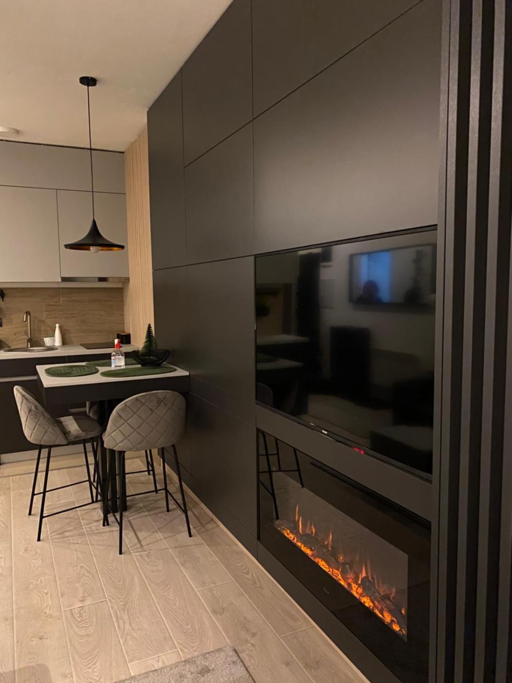 One-Bedroom Apartment. This apartments standout feature is the fireplace. This apartment includes 1 living room, 1 separate bedroom and 1 bathroom with a shower and free toiletries. In the well-fitted kitchen, guests will find a stovetop, a refrigerator, kitchenware and an electric kettle. The apartment offers soundproof walls, a seating area, a dining area, a flat-screen TV with streaming services, as well as mountain views. The unit has 4 beds. ;