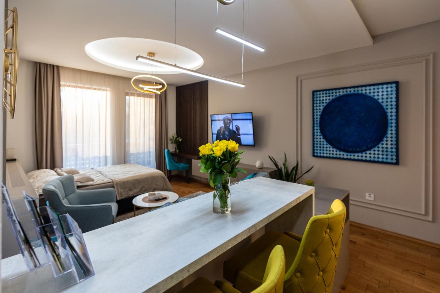 One-Bedroom Apartment. This apartments special feature is the private pool. The air-conditioned apartment features 1 bedroom and 1 bathroom with a shower and a hairdryer. In the fully equipped kitchen, guests will find a stovetop, a refrigerator, kitchenware and a tea and coffee maker. Featuring a terrace with lake views, this apartment also provides a washing machine and a flat-screen TV with streaming services. The unit offers 2 beds.