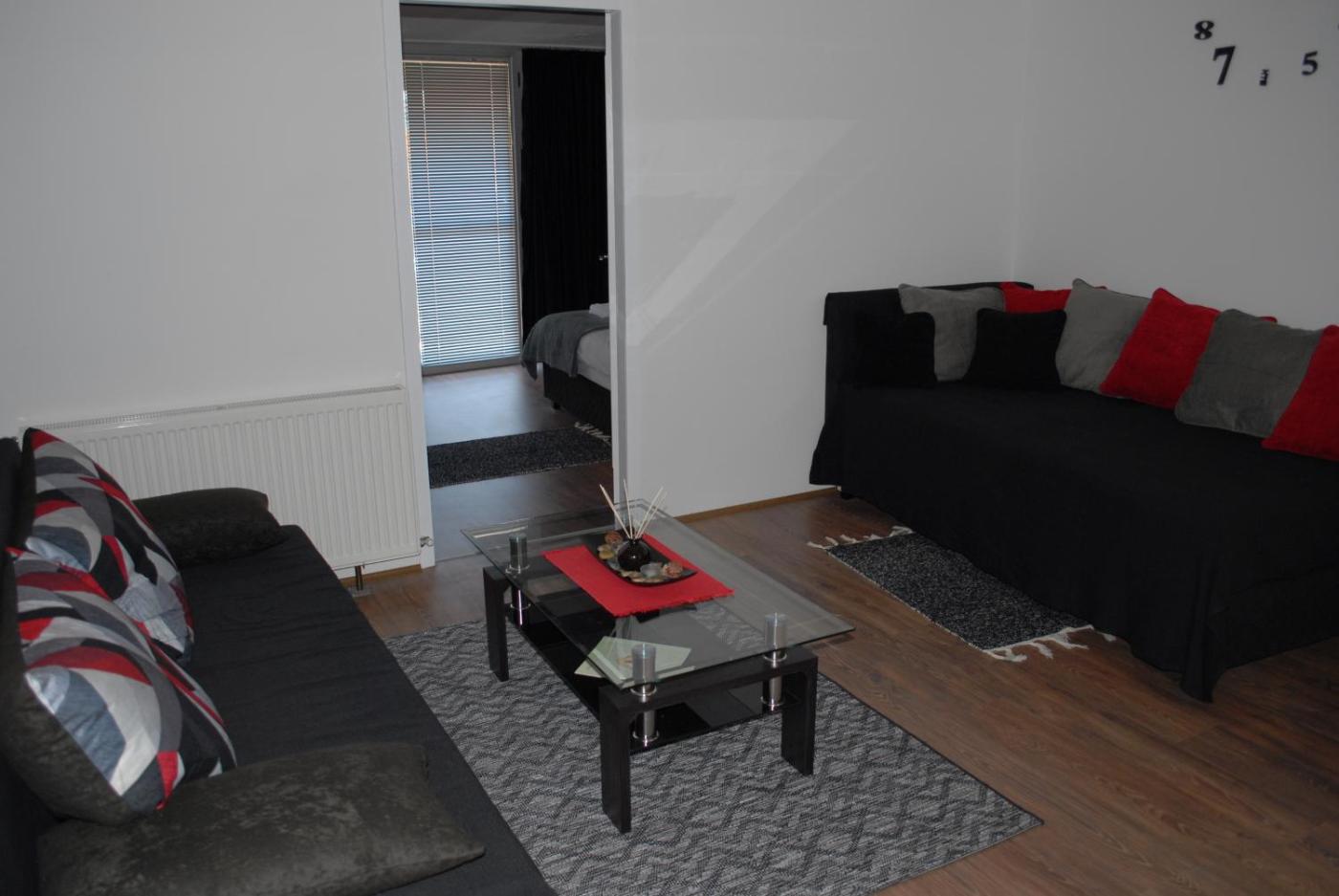 One-Bedroom Apartment. Featuring a private entrance, this air-conditioned apartment consists of 1 living room, 1 separate bedroom and 1 bathroom with a shower and a hairdryer. Guests can make meals in the kitchen that is equipped with a stovetop, a refrigerator, kitchenware and an oven. The apartment provides soundproof walls, a seating area, a dining area, a flat-screen TV with cable channels, as well as mountain views. The unit offers 4 beds.