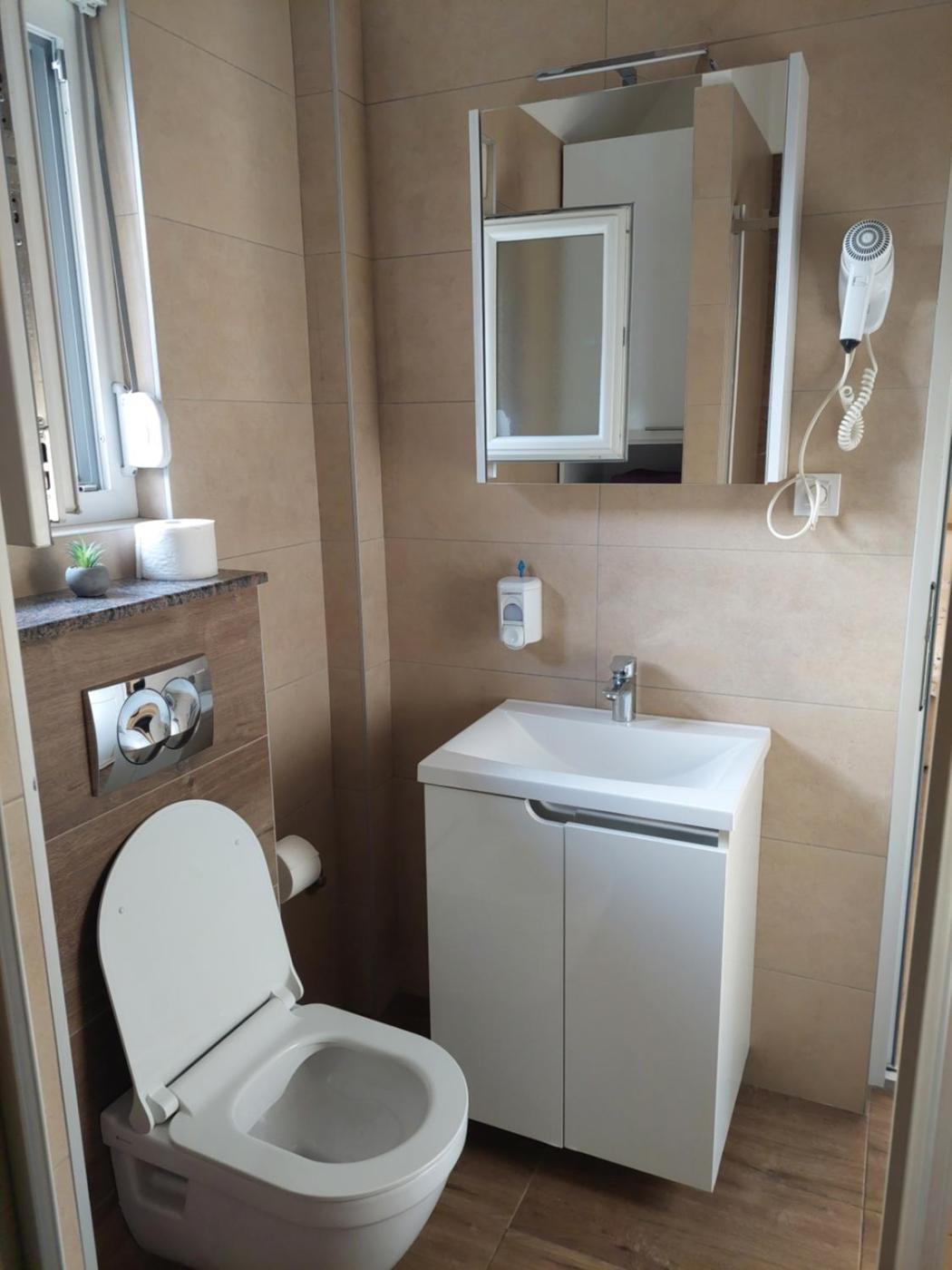 One-Bedroom Apartment. Featuring a private entrance, this air-conditioned apartment consists of a kitchen, 1 bedroom and 1 bathroom with a bath or a shower and a hairdryer. Guests can make meals in the fully equipped kitchen that features a stovetop, a refrigerator and kitchenware. The apartment provides a flat-screen TV with cable channels, a washing machine, a wardrobe, tumble dryer as well as garden views. The unit offers 1 bed.