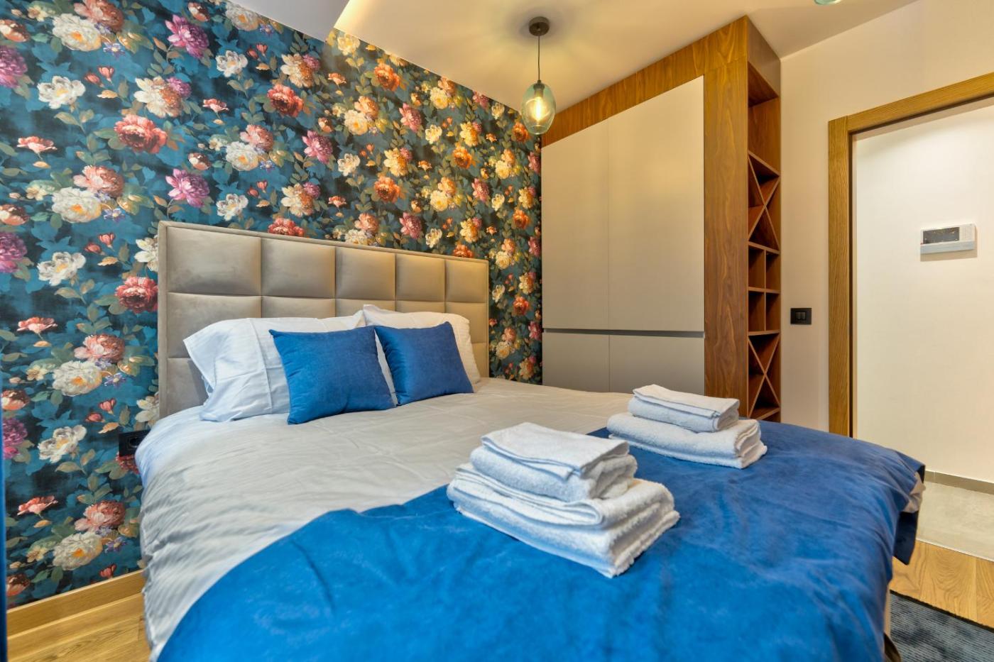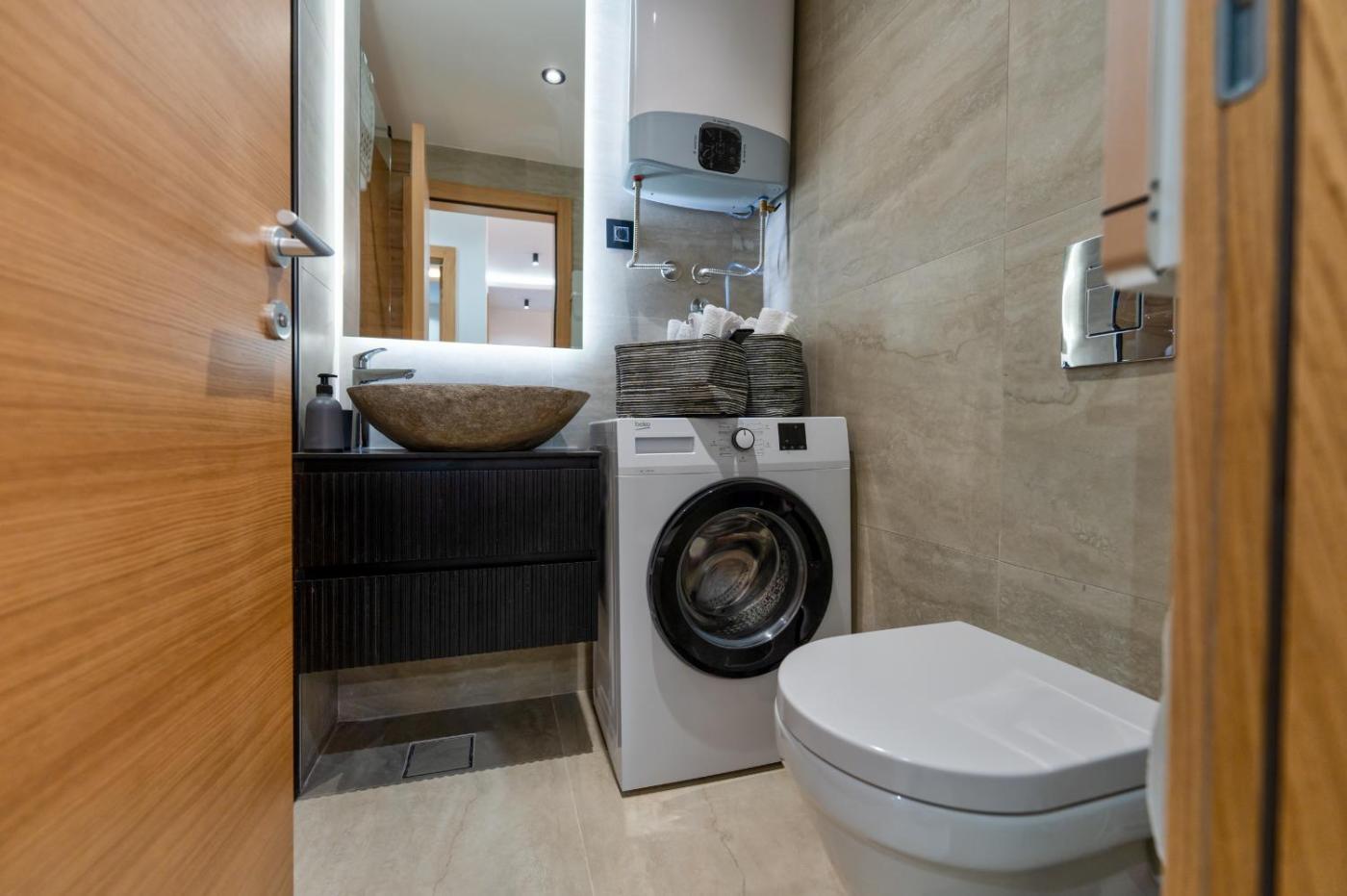 One-Bedroom Apartment. This luxurious apartment has a private pool, a hot tub and a sauna. This apartment comes with 1 living room, 1 separate bedroom and 1 bathroom with a shower and a hairdryer. In the kitchen, guests will find a refrigerator, kitchenware, an oven and a tea and coffee maker. Boasting a terrace with garden views, this apartment also features a washing machine and a flat-screen TV with streaming services. The unit has 2 beds.